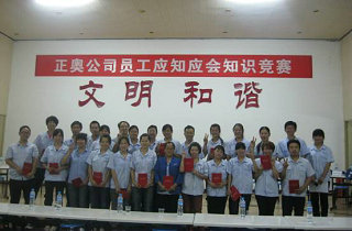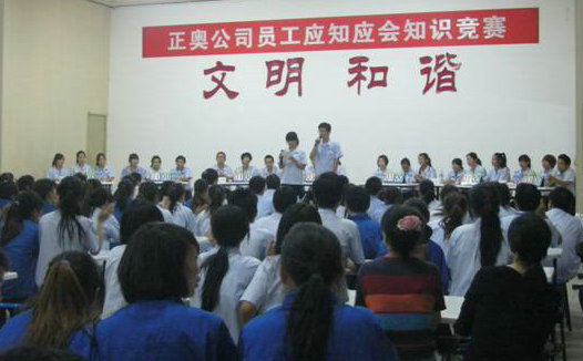 .為了促進公司全體一線員工學習、掌握崗位應知應會知識和基本的崗位技能、行為規(guī)范,提升一線員工的綜合技能素質(zhì),正奧公司工會組織生產(chǎn)一線員工,在發(fā)放知識卡片、進行全員書面測試的基礎上,選拔優(yōu)秀選手于9月14日晚開展了“應知應會知識競賽”活動,本次競賽根據(jù)生產(chǎn)工序共選撥7支參賽隊,每隊由3人組成。通過必答、搶答、觀眾互動等形式,根據(jù)各隊答題得分情況最終產(chǎn)生一、二、三等獎,公司領導為獲獎選手們頒發(fā)榮譽證書和獎金。