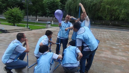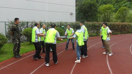 在拓展項目訓練中,大家聽從指揮、服從安排,整個活動在緊張、激烈、歡聲中度過?;顒娱_始,教練把參訓人員分成“天藍色、深藍色、橙色、紅色、淺綠色、深綠色6支隊伍。在統(tǒng)一著裝及熱身后,大家便以小隊為單位投入到緊張的訓練課程中?;顒影ㄖ笁喊?、撕名牌、真人CS、呼吸的力量、同心鼓、動力圈等項目,每一項訓練,都是一次感動,每一次感動,都帶來一次心靈的震撼。每個游戲結(jié)束后,大家都對失敗的原因進行深刻總結(jié),通過總結(jié)去領(lǐng)悟活動中所蘊含的理念和精神。讓大家深刻感受到了溝通、合作、相互激勵、融洽人際關(guān)系以及尊從團隊規(guī)范的重要性。如:“呼吸的力量”項目需要把各自隊伍分成 “領(lǐng)導組”“指揮組”和“執(zhí)行組”3個組。各小組成員各負其責,由“領(lǐng)導組”成員向“指揮組”成員描述“呼吸機”的構(gòu)造及制作方法,再由“指揮組”傳達并指導“執(zhí)行組”動手制作。如何向其他成員描述機器的構(gòu)造和制作方法,以便耗時最短最高效的完成“呼吸機”的制作,考驗著大家上傳下達的語言技巧、溝通的能力和協(xié)作能力。還有在最后進行的“動力圈”項目,更是將團結(jié)協(xié)作作用發(fā)揮到了極致,所有人圍成圓形,用力將柔軟的繩索向后拉扯,讓繩索變成一條鋼鐵般堅硬的繩圈,各自的隊長在繩子上抱圓走完全程!成功與否,在于對團隊成員信任,這種信任感來源于100%的執(zhí)行力和團隊協(xié)作能力!最終每個隊的隊長安全的走完了全程,活動在“眾人劃槳開大船”的激昂音樂中完滿結(jié)束。 一天的活動,每個人都有一份收獲、一份感悟。大家高效執(zhí)行、自我挑戰(zhàn)、互助協(xié)作、克難攻堅,增加了大家對團隊的理解和對自我價值的衡量。激發(fā)了大家克服了困難、克服了人性的弱點,真正的領(lǐng)悟到了團隊力量的強大,只要大家心往一起想、勁往一處使,任何困難和挫折都會被我們踩在腳下、拋在腦后,團隊目標也一定會實現(xiàn)!